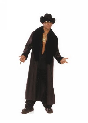 Add this long fur trimmed coat to your dark everyday wear and you have an instant 'pimp' look. Jewelry not included. Sizes 42-44.