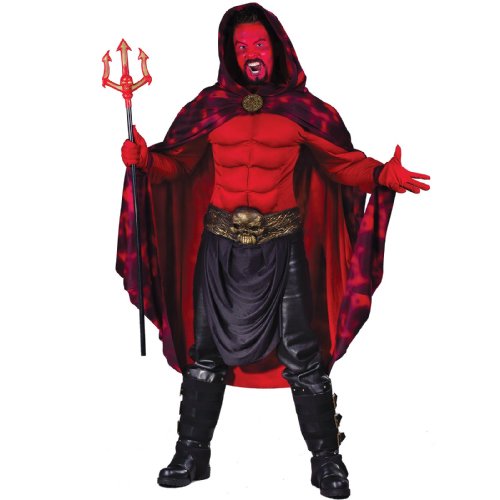 Includes Cloak, sculpted belt, muscle shirt, gloves, and boot tops. Available in one size Adult standard - fits up to 180 lbs. Pants, makeup and pitch fork not included.